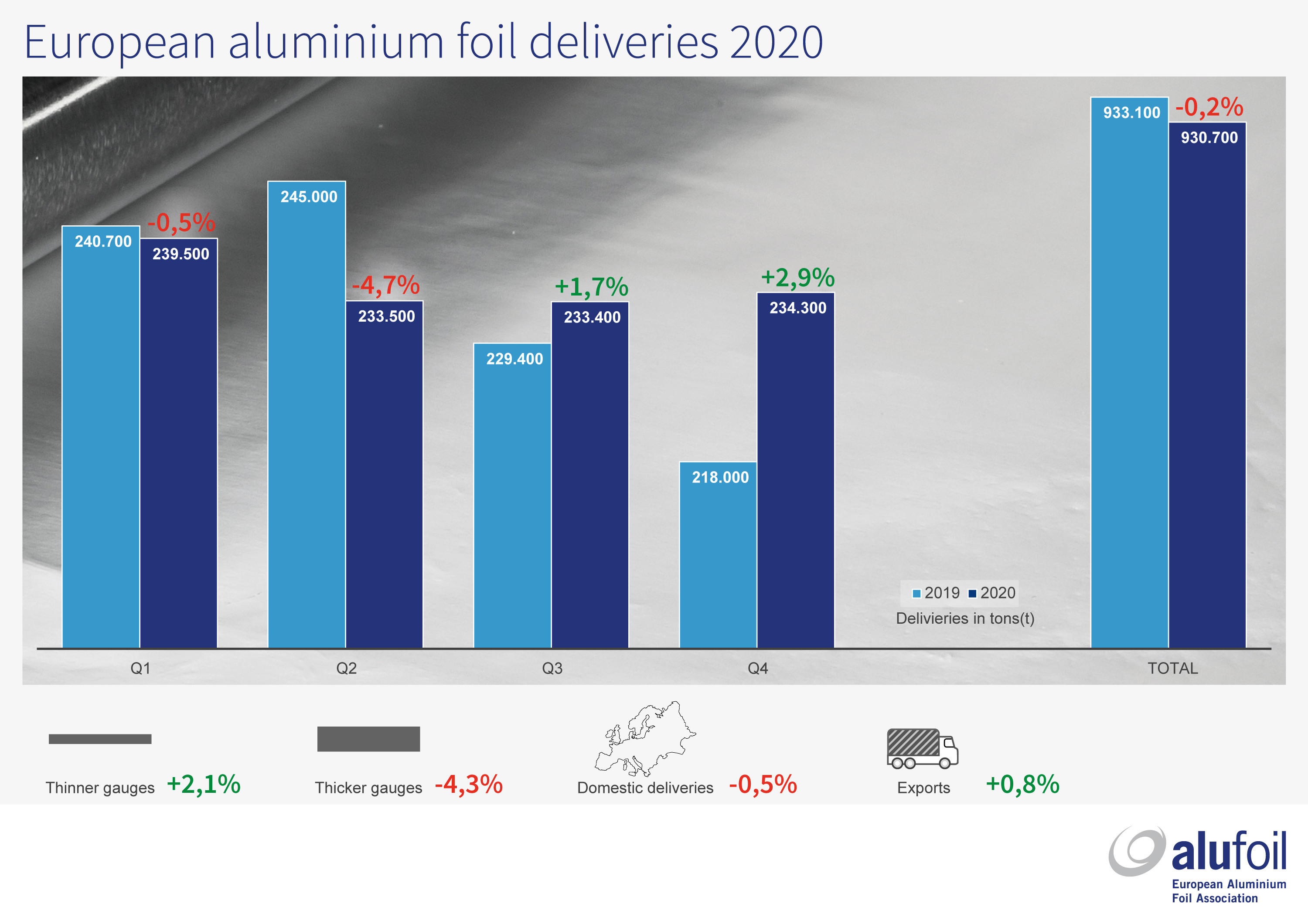 Guido Aufdemkamp, Executive Director of EAFA believes the figures show a strong temporary recovery of the European economies while being very uncertain about the future development. “Fortunately, the resilience of the European market is very encouraging and gives us reason for optimism that this will keep our foil production at a high level over the entire year. But external disruptions and availability in the global logistic chain or further sudden rises in energy costs as well as expected high inflation force the manufacturers to continue being on high alert.”